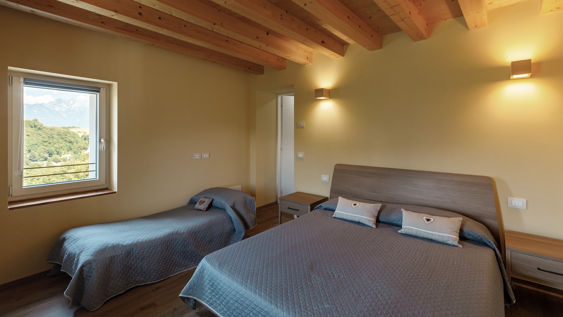 Arredata con gusto e colori caldi, offre un letto matrimoniale e un letto singolo confortevole e una vista spettacolare sul fiume Piave e sulle Dolomiti.
